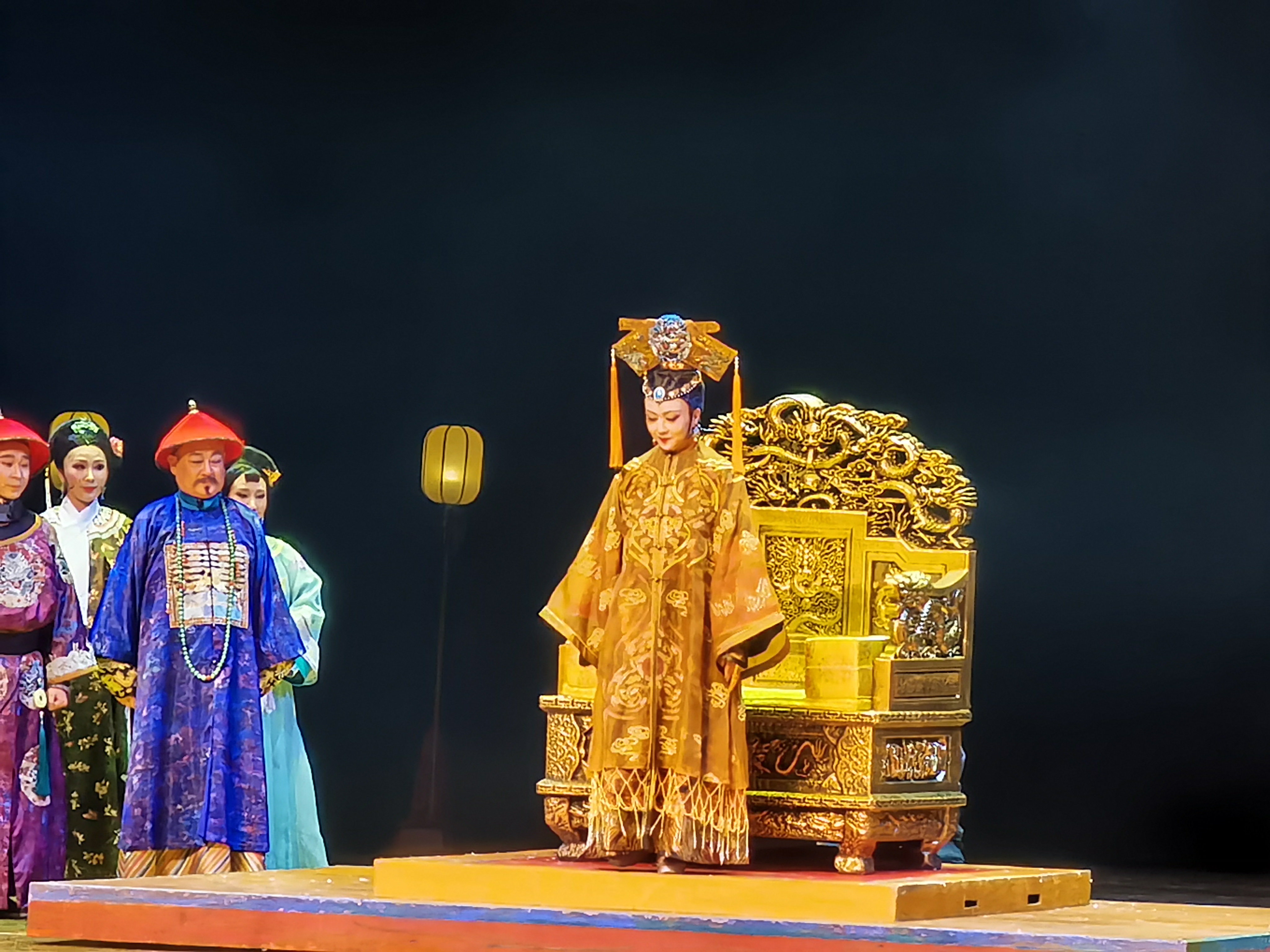 皇后真是一个有意思的存在。她也曾是个天真的少女,但因为“祖宗家法”到了这个地步。可悲的是,如今的她口口声声“祖宗家法”说得比谁都更理直气壮,甚至是慈禧都还没发声,她自动地就去做了。是吧,“太后之后皇后便是太后”,她终究是甘愿成为了“祖宗家法”的发号施令者。(以至于最后慈禧病重卧床【实际上是人偶】,幕前突然走出来一个穿着太后服饰的人【慈禧】,我没看清脸甚至以为这句话灵验了……)